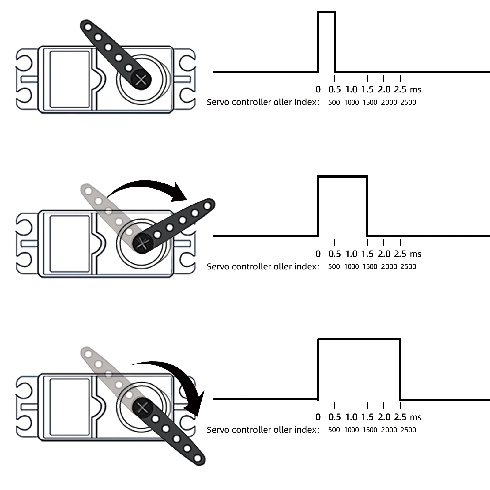 Max. Operating Travel Angle:180°±10°(500~2500μs)
